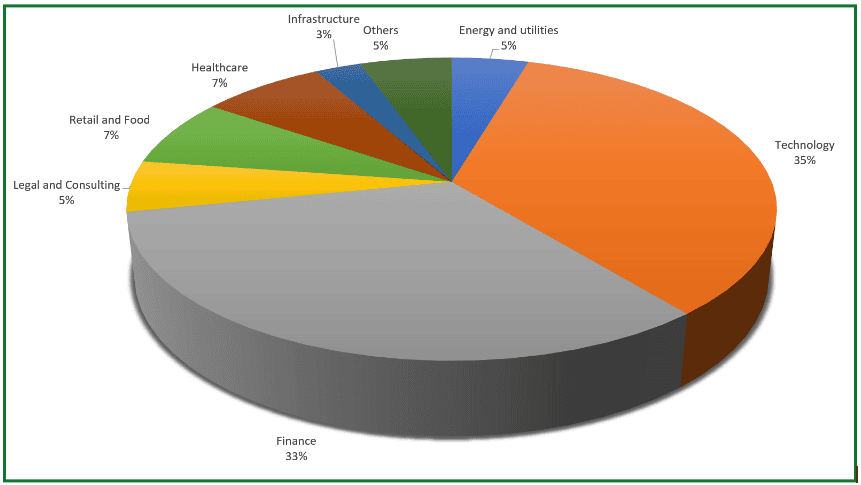 Citadelo provided penetration testing and security audits for a wide range of industries in 2021. While the vast majority of projects (35%) fell under the broadly defined Technology sector, clients from the field of Finance were not far behind, making up 33% of all projects tested. The remaining sectors were fairly evenly distributed, each making up between 3 and 7% of all projects tested.