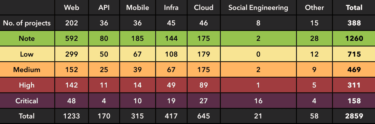 Our data underscores the critical need for comprehensive penetration testing for IT projects, regardless of industry. As cyber-attacks become more frequent and sophisticated, penetration testing and full-stack security assessments are more critical than ever.